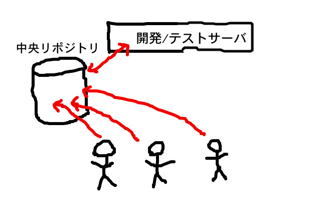 という問題に陥りがちです。(作業ブランチを使えば改善されるのですが、簡単な変更のためにブランチを作るのは面倒でサボりがちです。一方、大きな変更をブランチで進めるとマージの時にコンフリクト祭りで苦労するのがお決まりのパターンでした。また、開発サーバの数が限られていたため、動作確認のためにこまめにブランチを切り替える必要があるなど、結果として「ブランチ=面倒」という評判が固まりつつありました。)